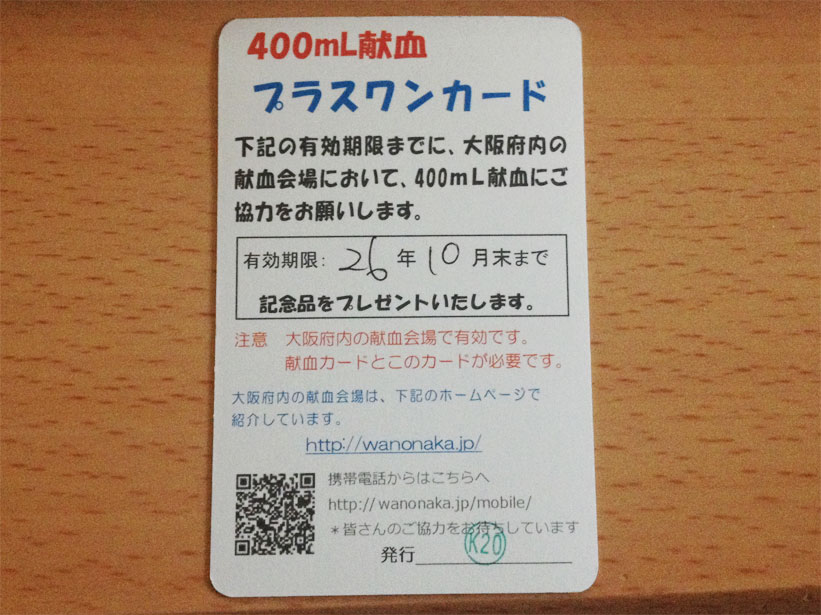 私は昨夏に献血車で、その時に手渡されたプラスワンカードの粗品が気になって
