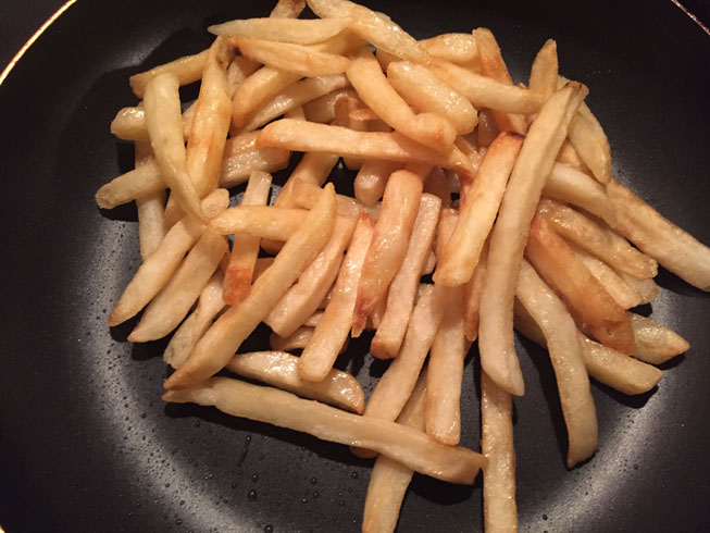 こうすると、ポテトフライの油がアルミホイルの溝(?)に落ちるので、カリッと仕上がるらしい。
