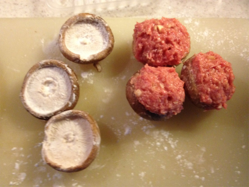 6個のシイタケに詰めたらモリモリになってしまったので、