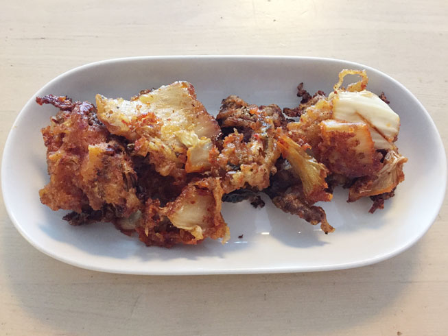 キムチの天ぷらというより、出来の悪~い唐揚げっぽく見える。
